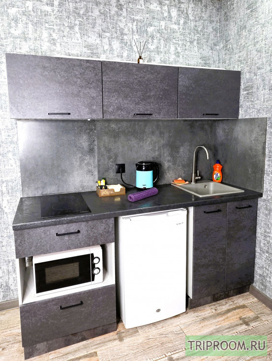 • кухонная зона полностью оборудована: холодильник, плита, микроволновая печь, чайник.