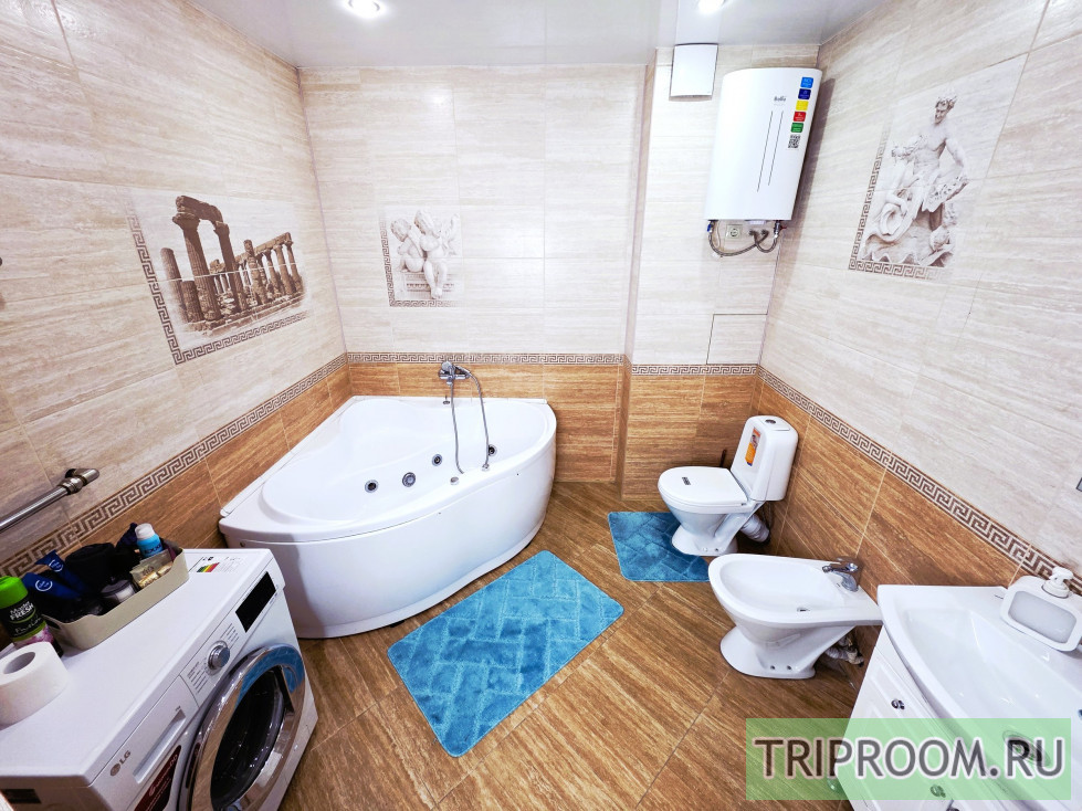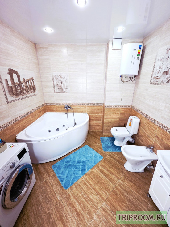 • ванная комната: большая джакузи, биде, душ, фен, стиральная машина, комплект полотенец, туалетные принадлежности, шампунь, гель для душа, мыло, маска для лица, ватные палочки и диски, дезодоранты, утюг, гладильная доска.
